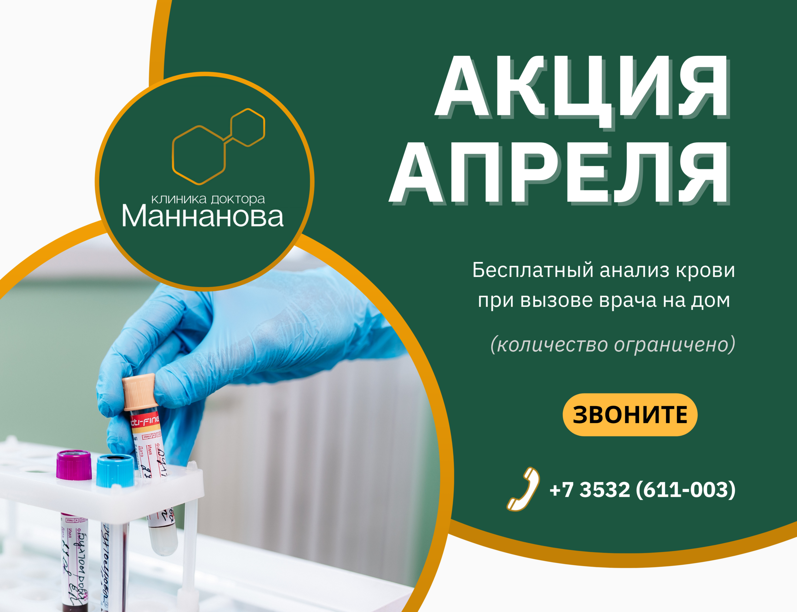 Узнать подробности акции и вызвать доктора на дом можно по телефону +7 (3532) 611-303