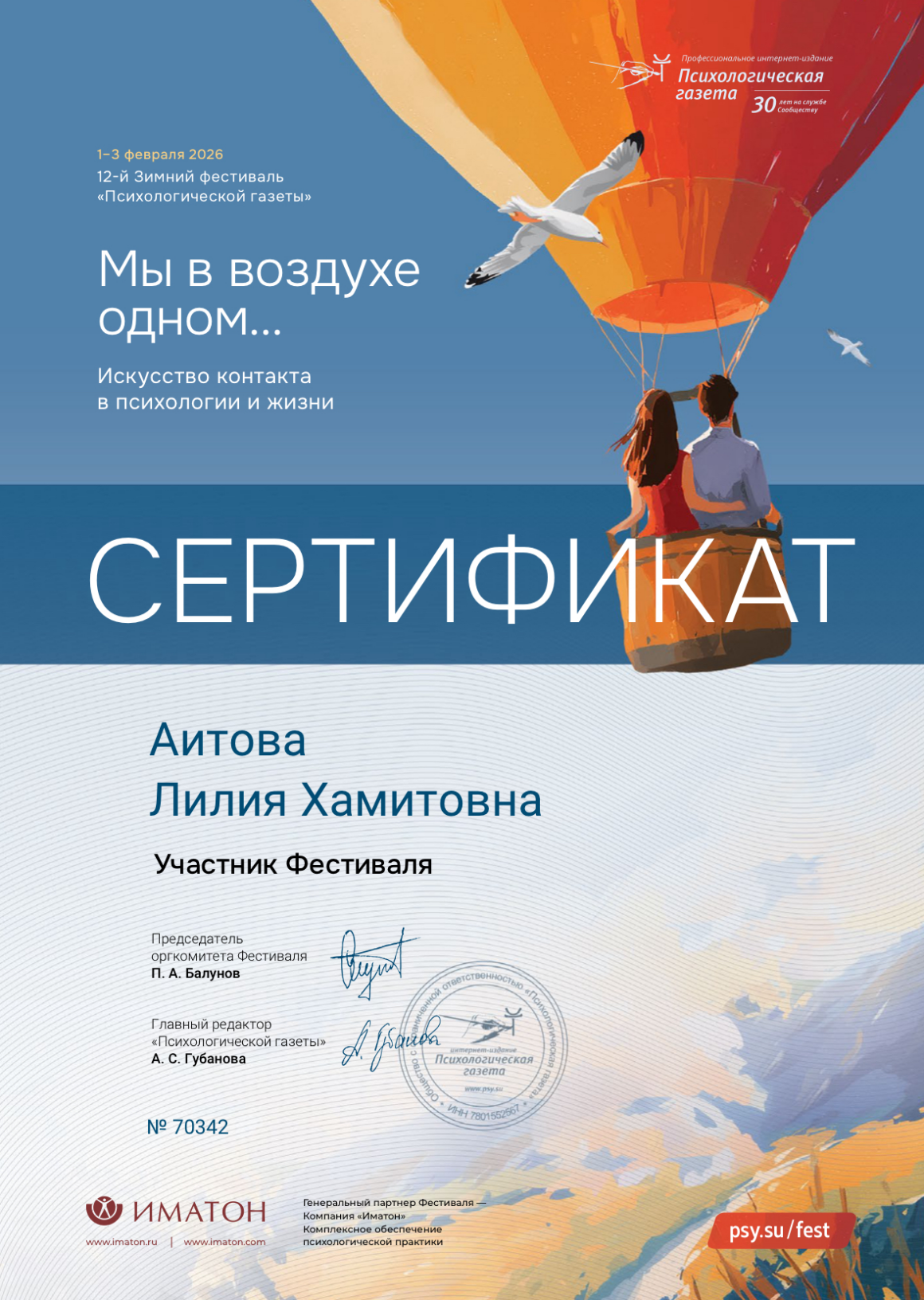 - Июнь 2019 г. – повышение квалификации «Клиническая психология».