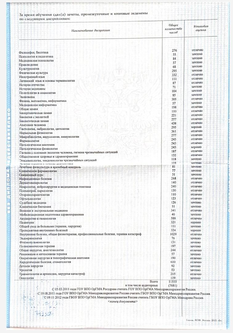 2013-2014 гг. – интернатура по специальности «Терапия» при ГБОУ ВПО «Оренбургская государственная медицинская академия» Министерства здравоохранения Российской Федерации.