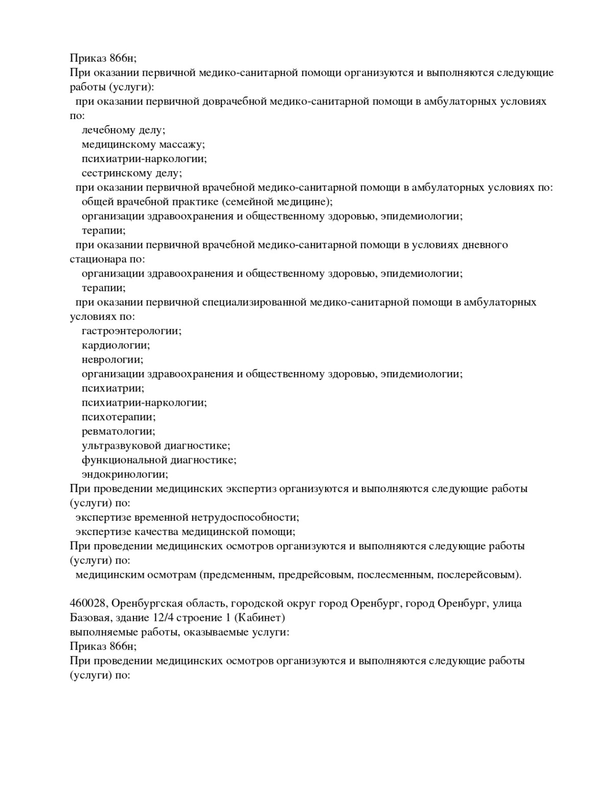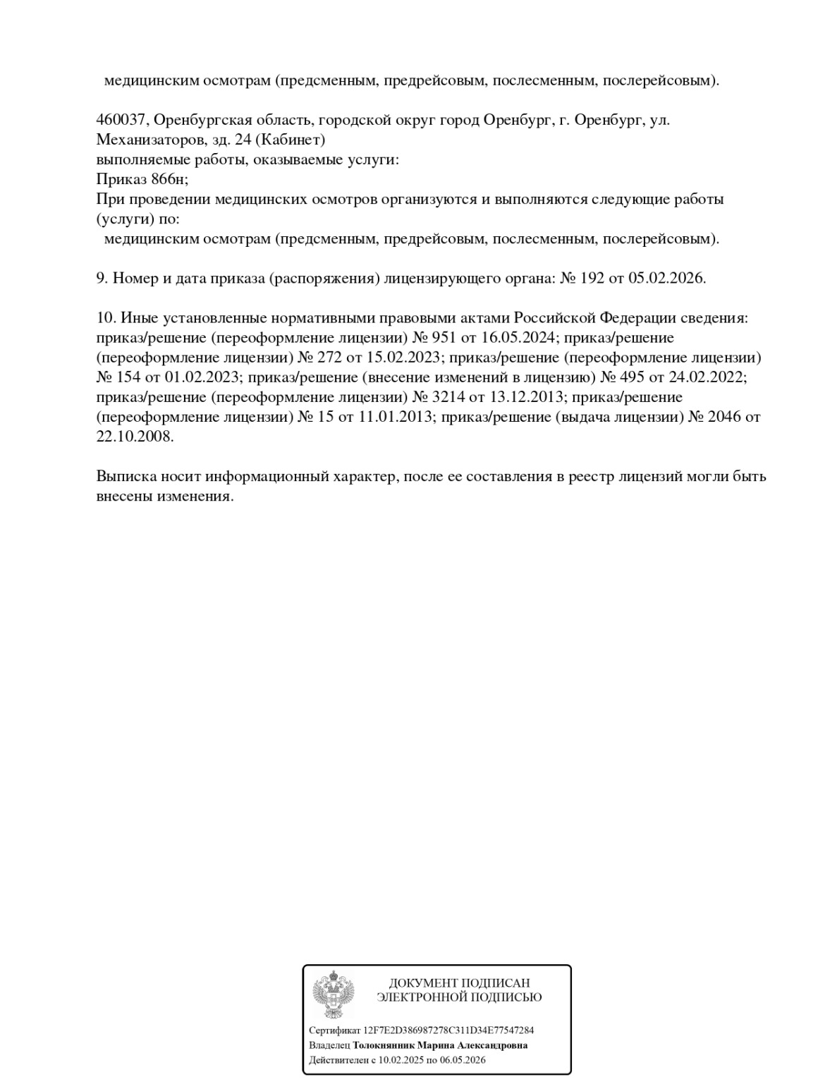 Лицензия выдана Министерством здравоохранения Оренбургской области.