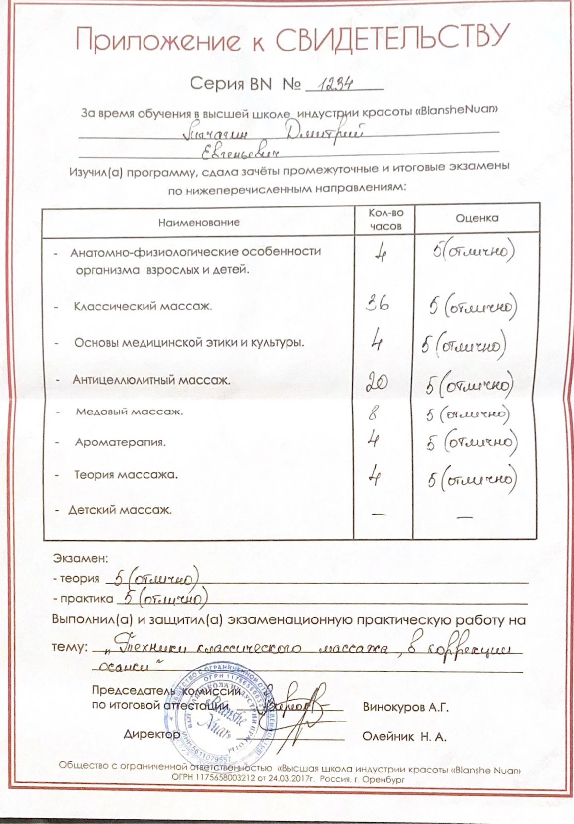 2022 г. – обучение на базовом курсе массажа в студии Blanshe Nuar.